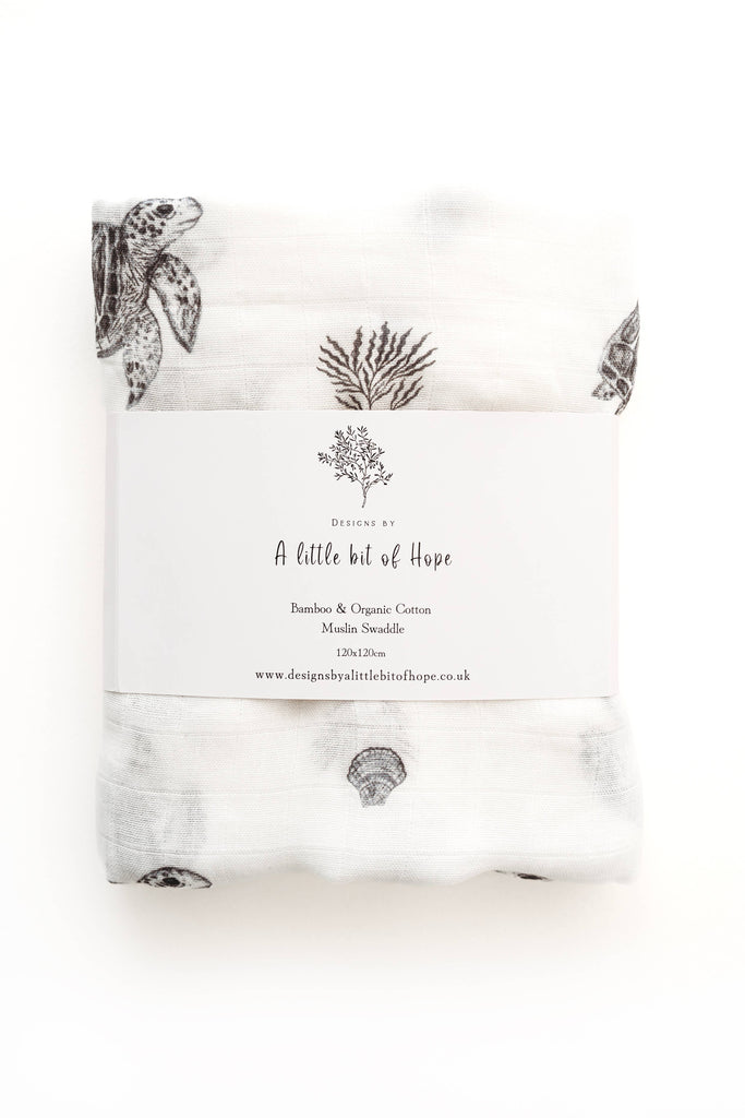 Into the Ocean Organic Cotton Muslin Swaddle Blanket - Designs by a Little Bit of Hope