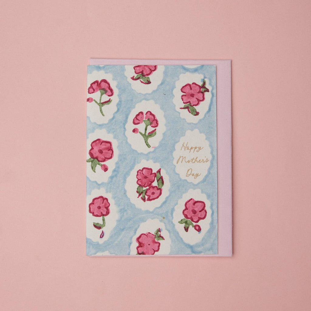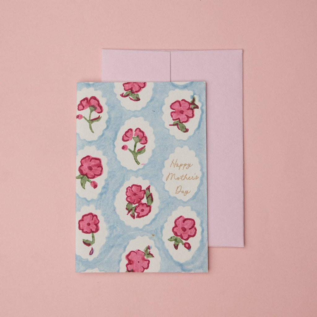 Pink Floral Mother's Day Hand Block Printed Greeting Card - Paper Mirchi