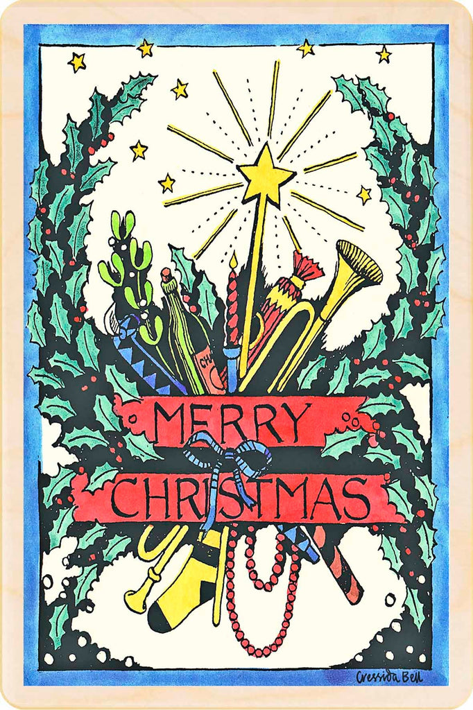 ‘Merry Christmas' Wooden Postcard by Cressida Bell.