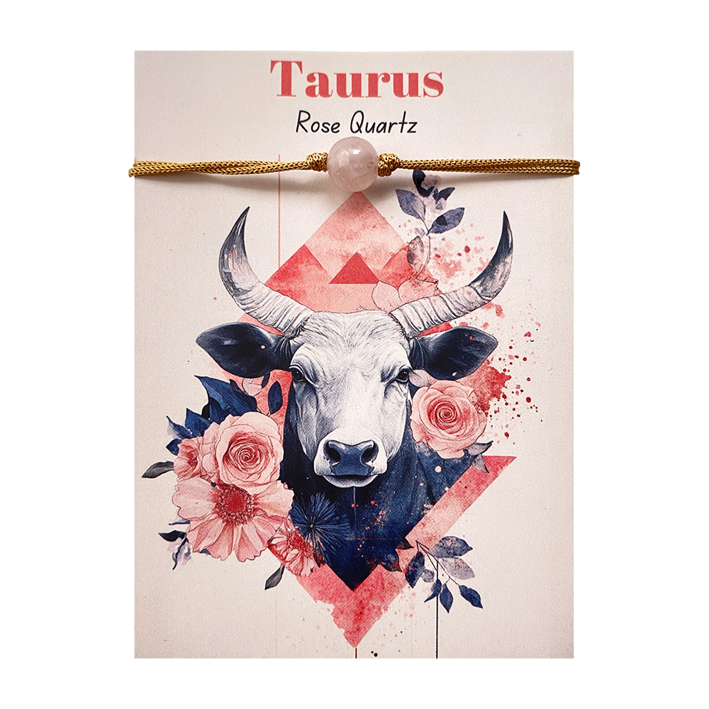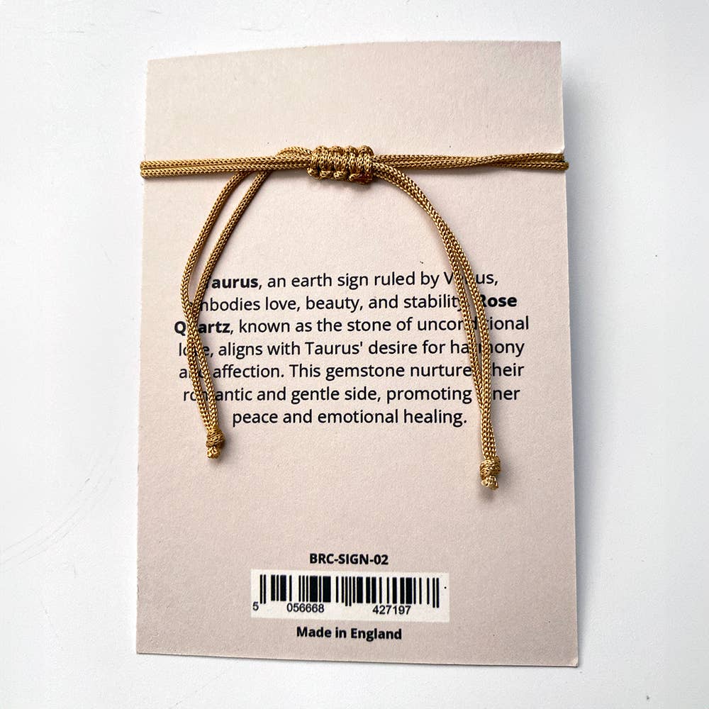 Taurus bracelet on an adjustable cord, featuring a rose quartz gemstone.