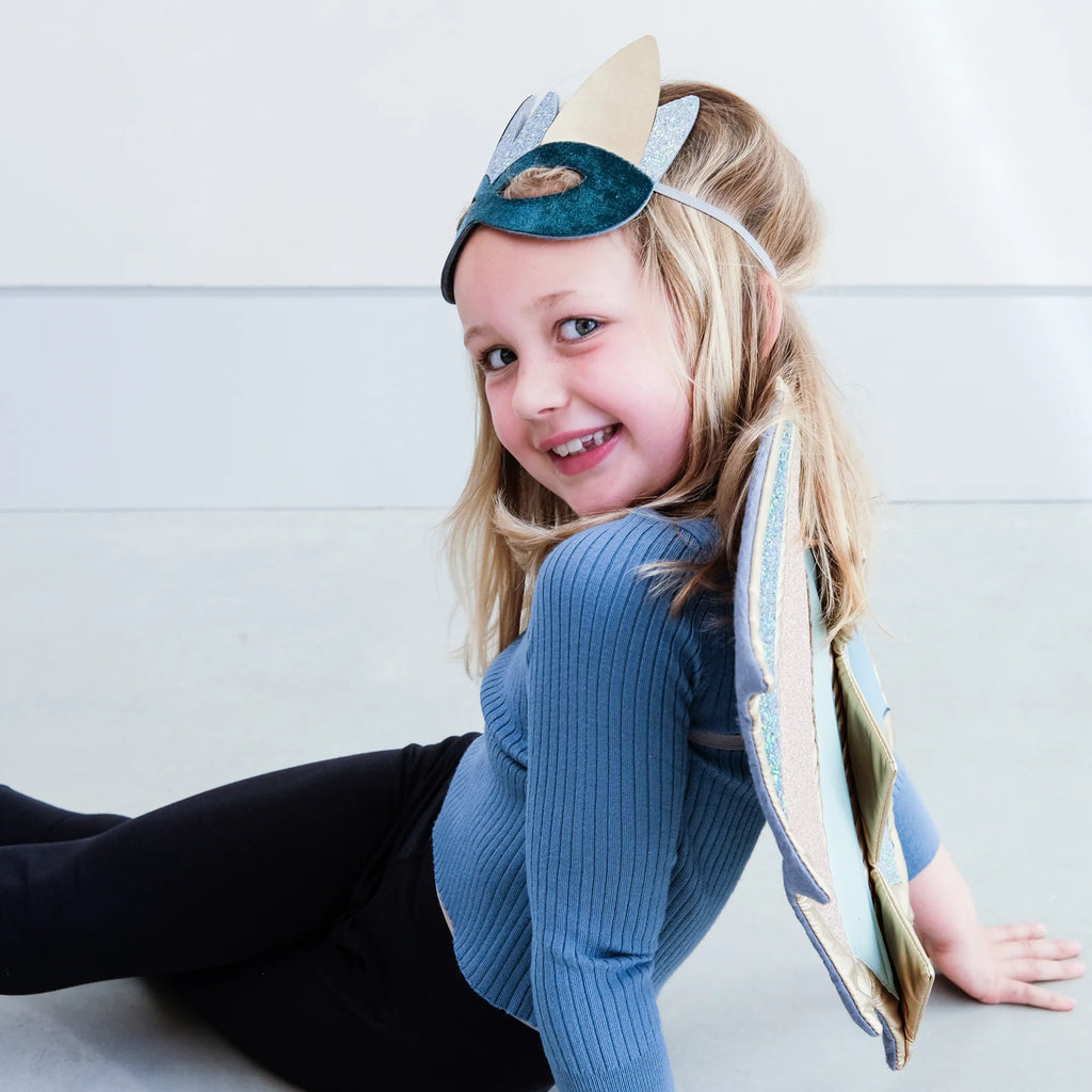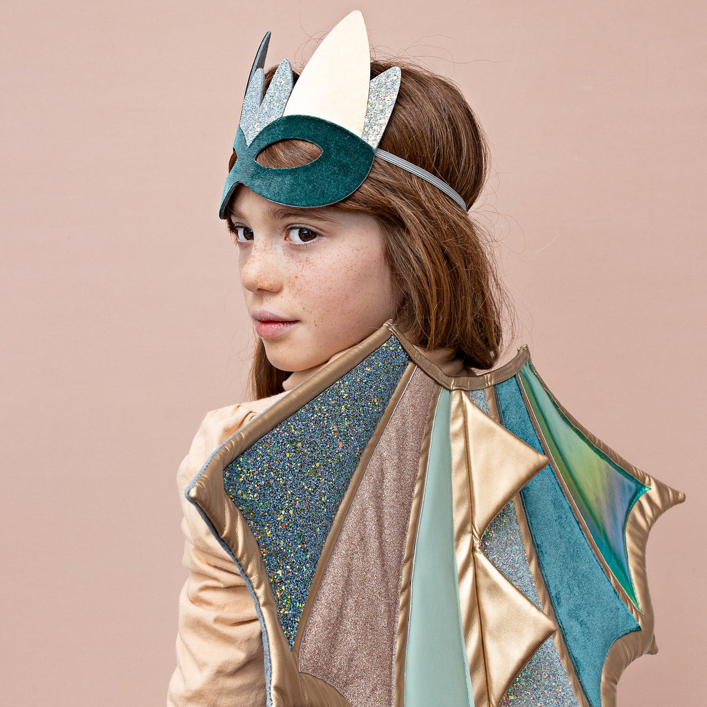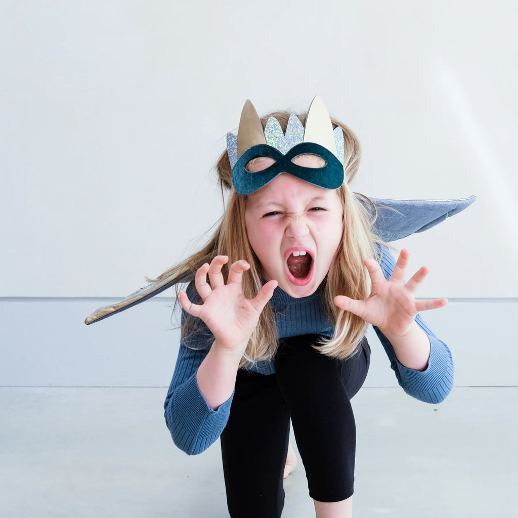 Ignite their imagination in a puff with our magical new dragon mask! This mask is sure to have them soaring to new heights as a world of fantasy awaits! Team with our dragon wings to complete the look!