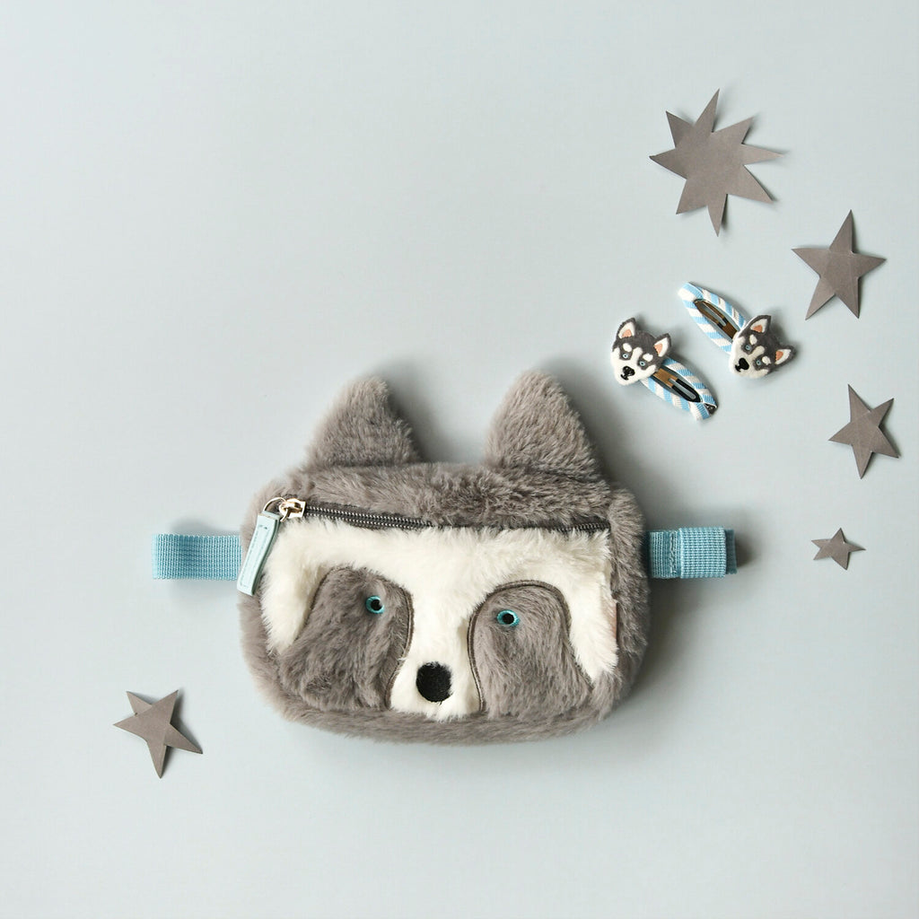 Our loyal snow pup is the perfect buddy to keep your winter essentials safe! This loveable husky bug bag has piercing blue eyes and fluffy ears, and is fully lined with spotty fabric! Featuring a zip closure, adjustable strap and belt loop.