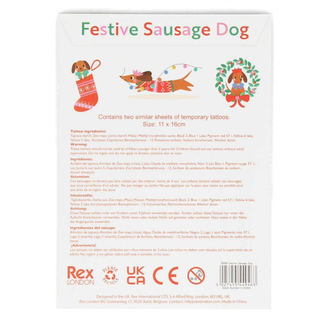 Festive Sausage Dog Temporary Tattoos - Rex London