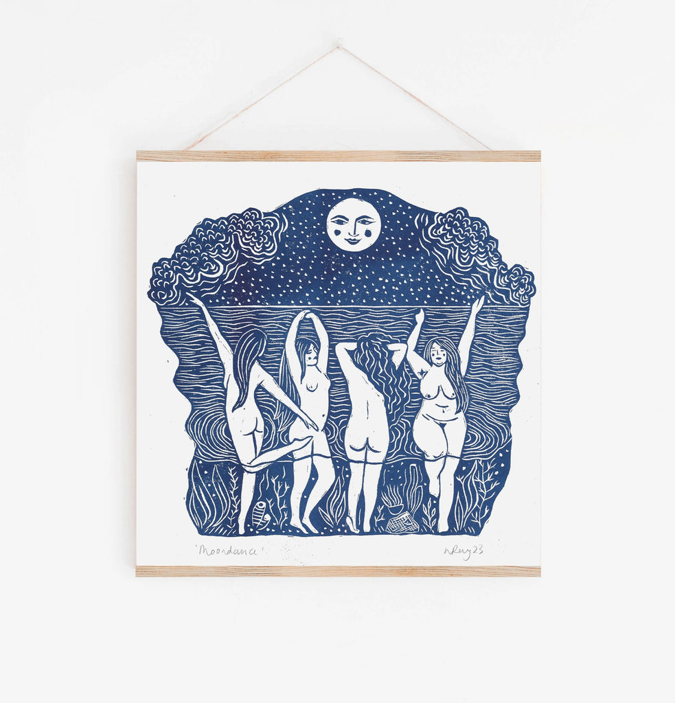 Prints by the Bay is the printmaking practice of Nicole Purdie, an illustrator and printmaker from Dorset. She started experimenting with the linocut technique back in 2019, and quickly fell in love with the process. “Linocut is a very handmade and traditional method; unlike modern digital illustration styles, one can really feel the connection between artist and image by seeing and responding to the mark making and imagery. As an illustrative medium it perfectly suits strong visual narratives and storytelling, which are key to driving my work in print.”