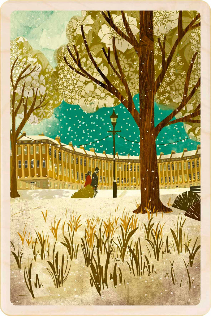‘Royal Crescent Bath at Christmas' sustainable wood greeting card.